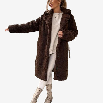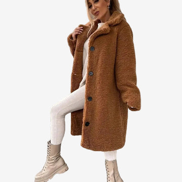 Este abrigo de peluche estilo Teddy combina comodidad, abrigo y un diseño moderno que eleva cualquier conjunto. Su textura suave y envolvente aporta una sensación cálida inmediata, mientras que el cuello estructurado y la botonadura sencilla añaden un toque elegante y refinado.